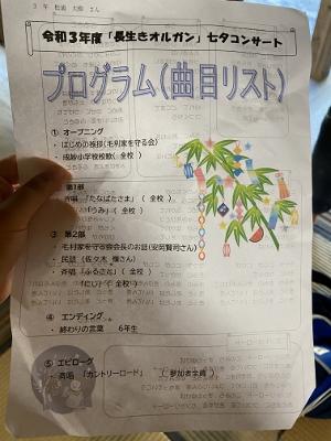 毛利家で、「長生きオルガン七夕コンサート」がありました。19名の児童が参加し、七夕飾りをしたり100年以上前のオルガンに合わせて歌を歌ったりしました。途中、民話の会の方に地域に伝わる昔話を聞かせてもらったりもしました。長い歴史を感じる素敵なコンサートになりました。